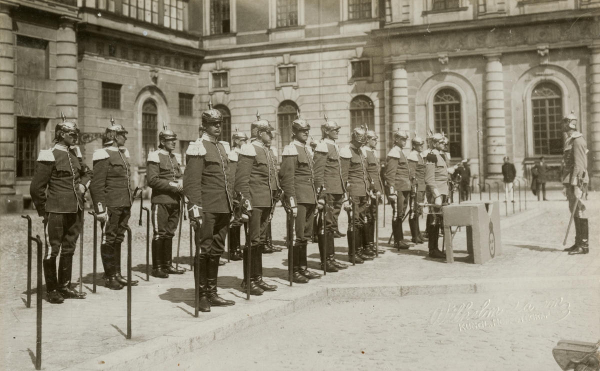 Titel: Text i fotoalbum: Kungl. Lifgardet till häst på Högvakt.
