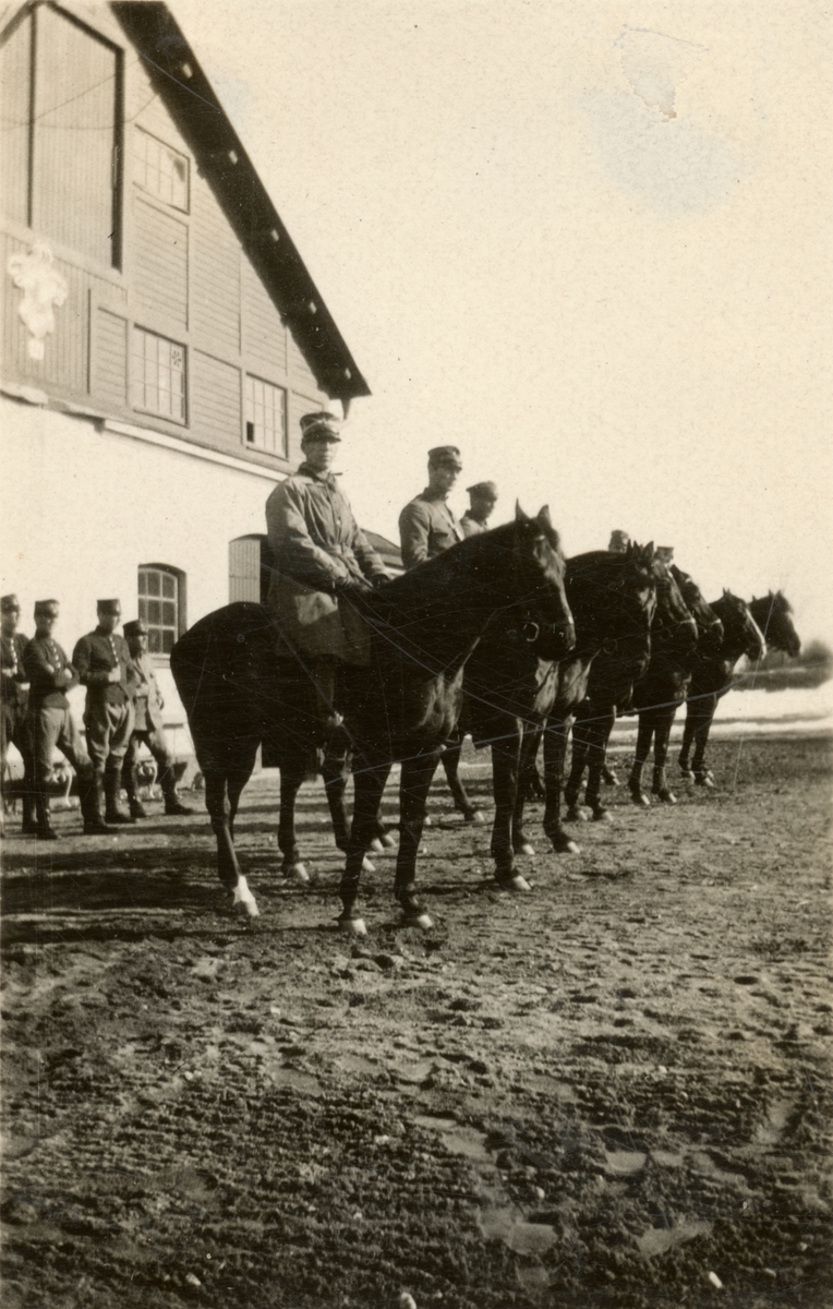 Titel: Text i fotoalbum: "Sommaren 1929." Soldater till häst.