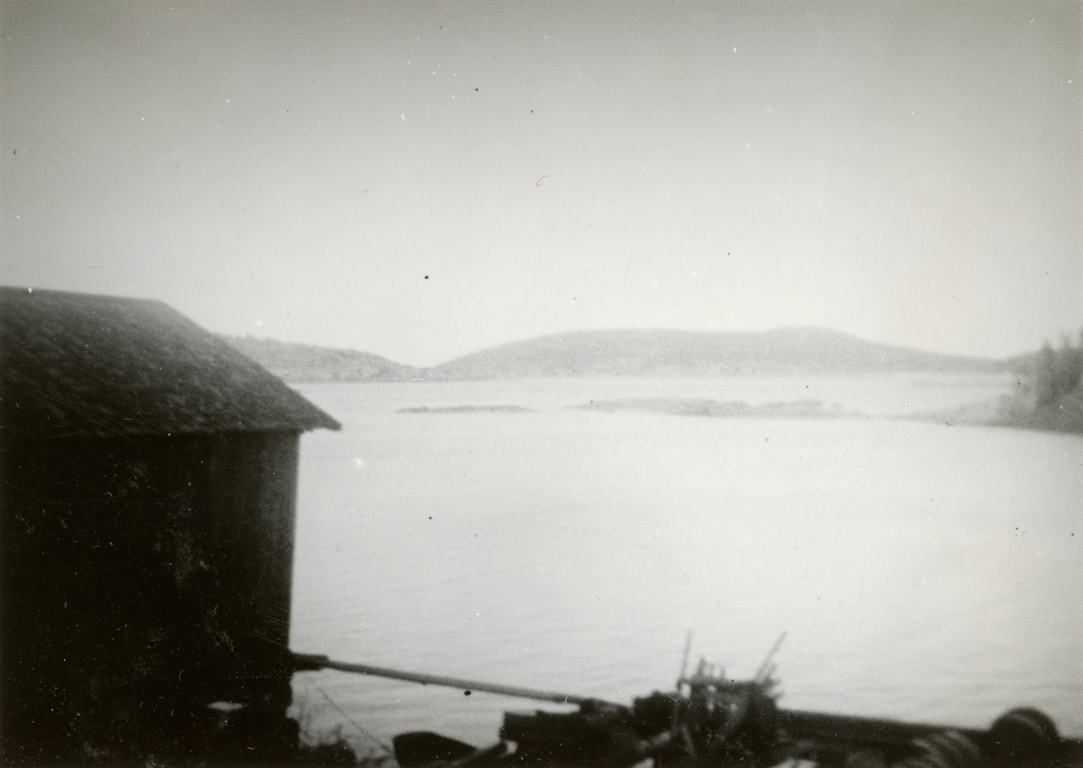 Text i fotoalbum: "Rekogneseringstur i Nordingrå med Beckman och Bergman. Ångermanland. Sjöbodar vid kusten".