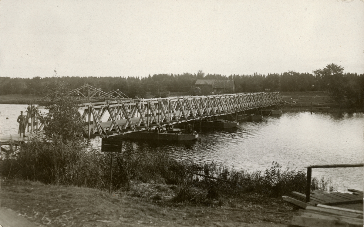 Text i fotoalbum: "Rotskär, ön i Dalälvens mynning. Bron påbörjad... och efter några dagar färdig".