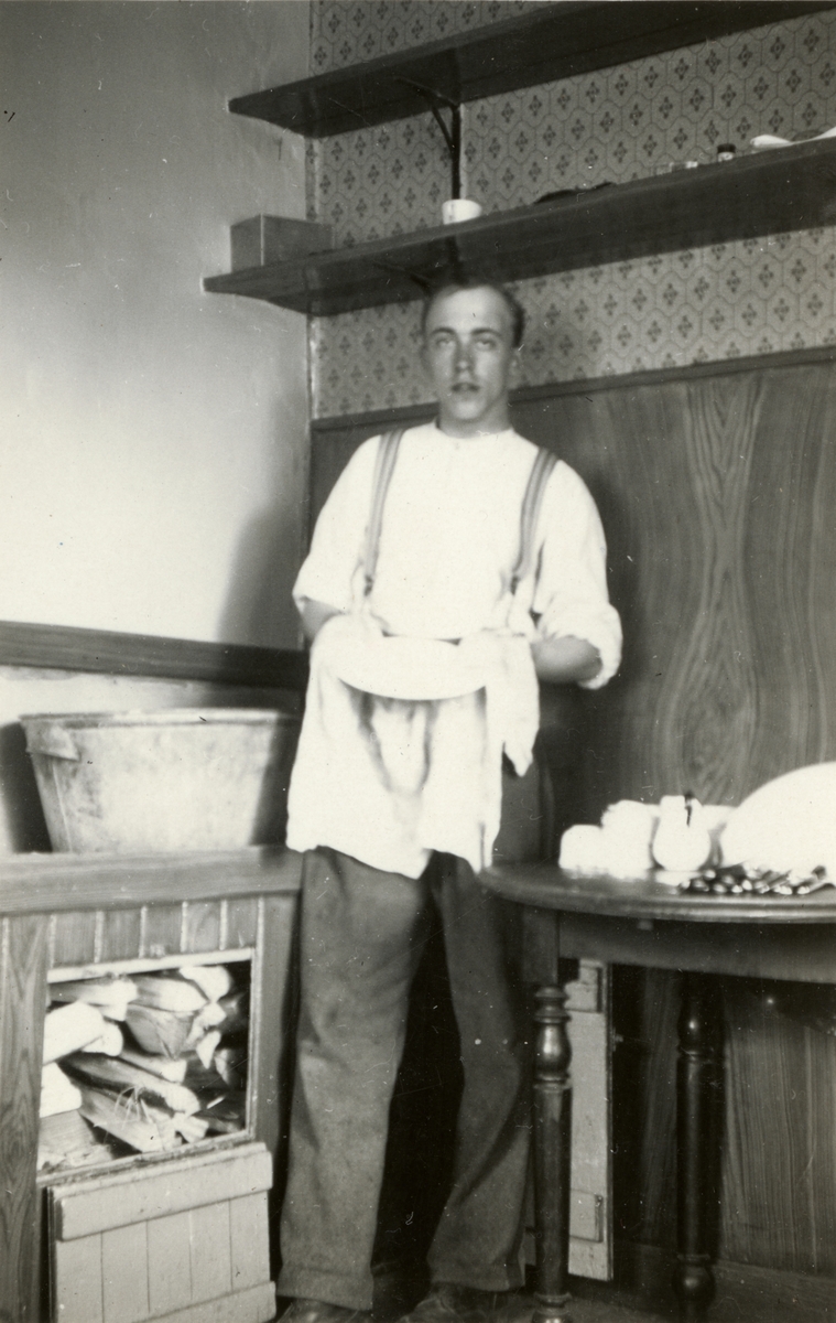 Text i fotoalbum: "Brobyggnad i Storvreta under mötet 1931. Våra kockar lagade bra mat".