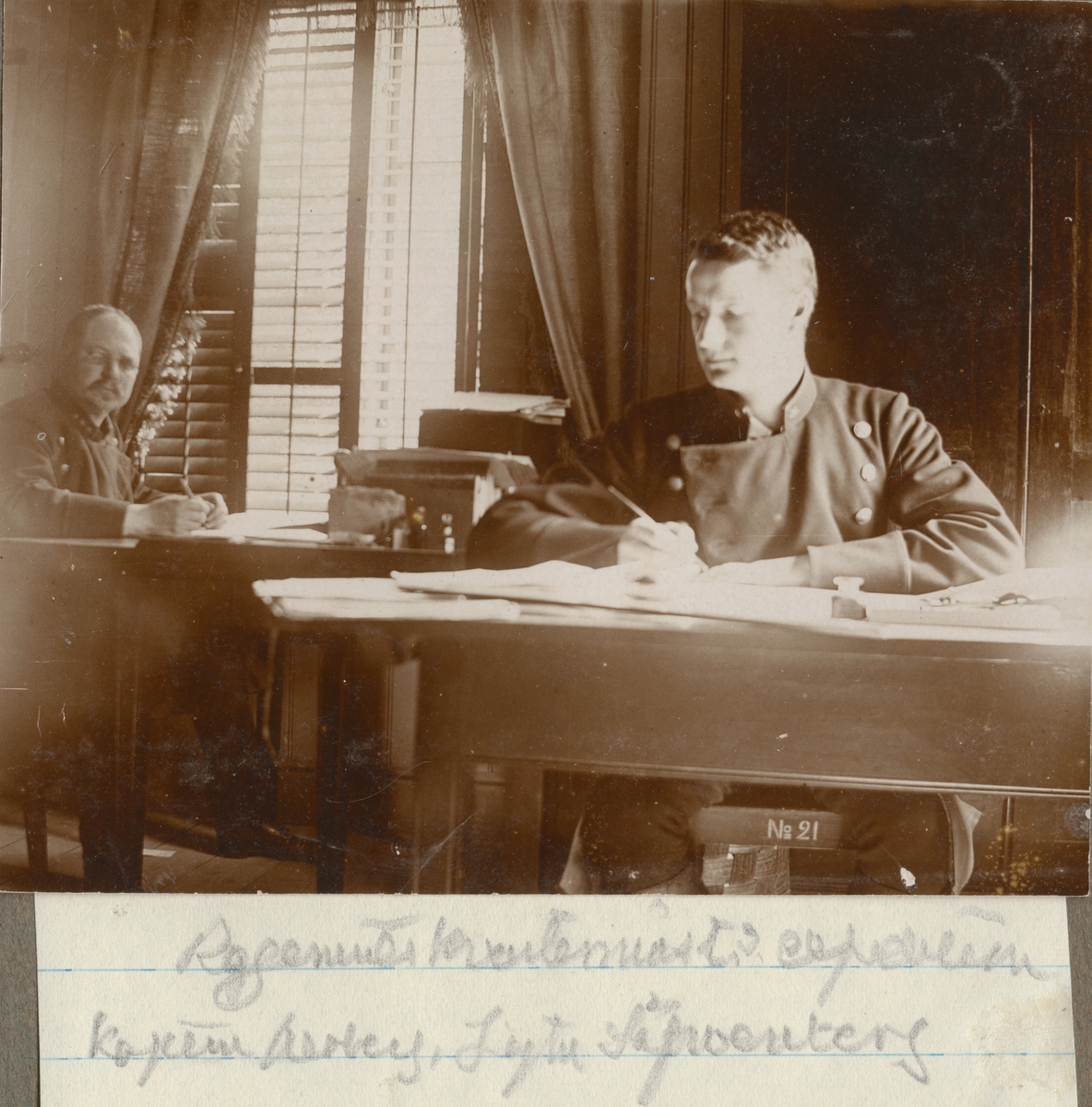 Titel: Officerare från Hälsinge regemente utför kontorsarbete.