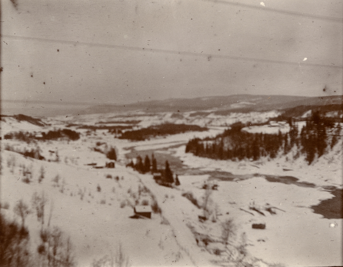 Titel: Utsikt över vinterlandskap, Smålands husarregemente K 4 på vinterövning i Norrbotten omkring 1910.