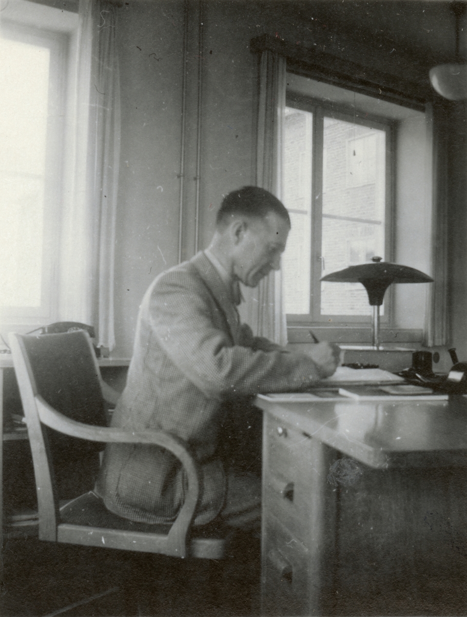 Titel: Text i fotoalbum: "KAFI DB (=Kungl. Arméförvaltningens Driftsbyrå). Ch: Övljtn Levenius".