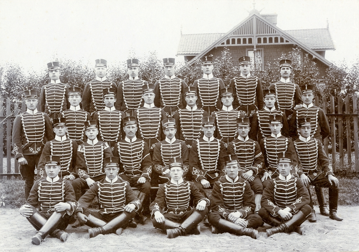 Grupporträtt av beväringar vid Livregementets husarer K 3.