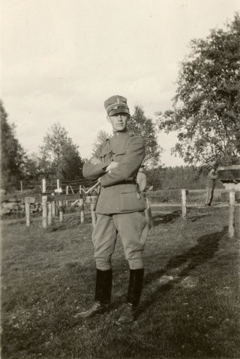 Titel: Text i fotoalbum: "Sommaren 1929. Skolkompaniet. Befäl på skolkomp. Amnéus."