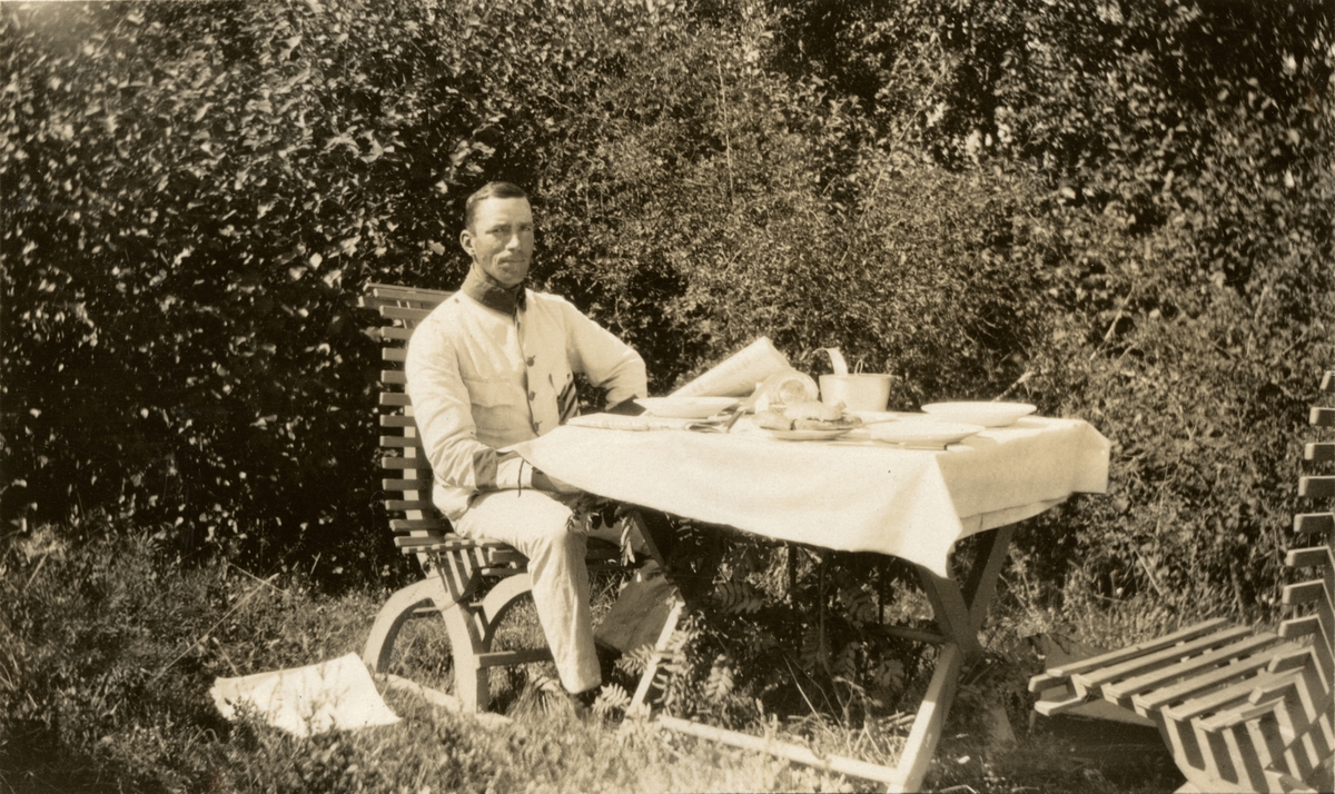 Titel: Text i fotoalbum: "Kompaniets befäl. Gubben . kompch- kapt. Dyrsch"".