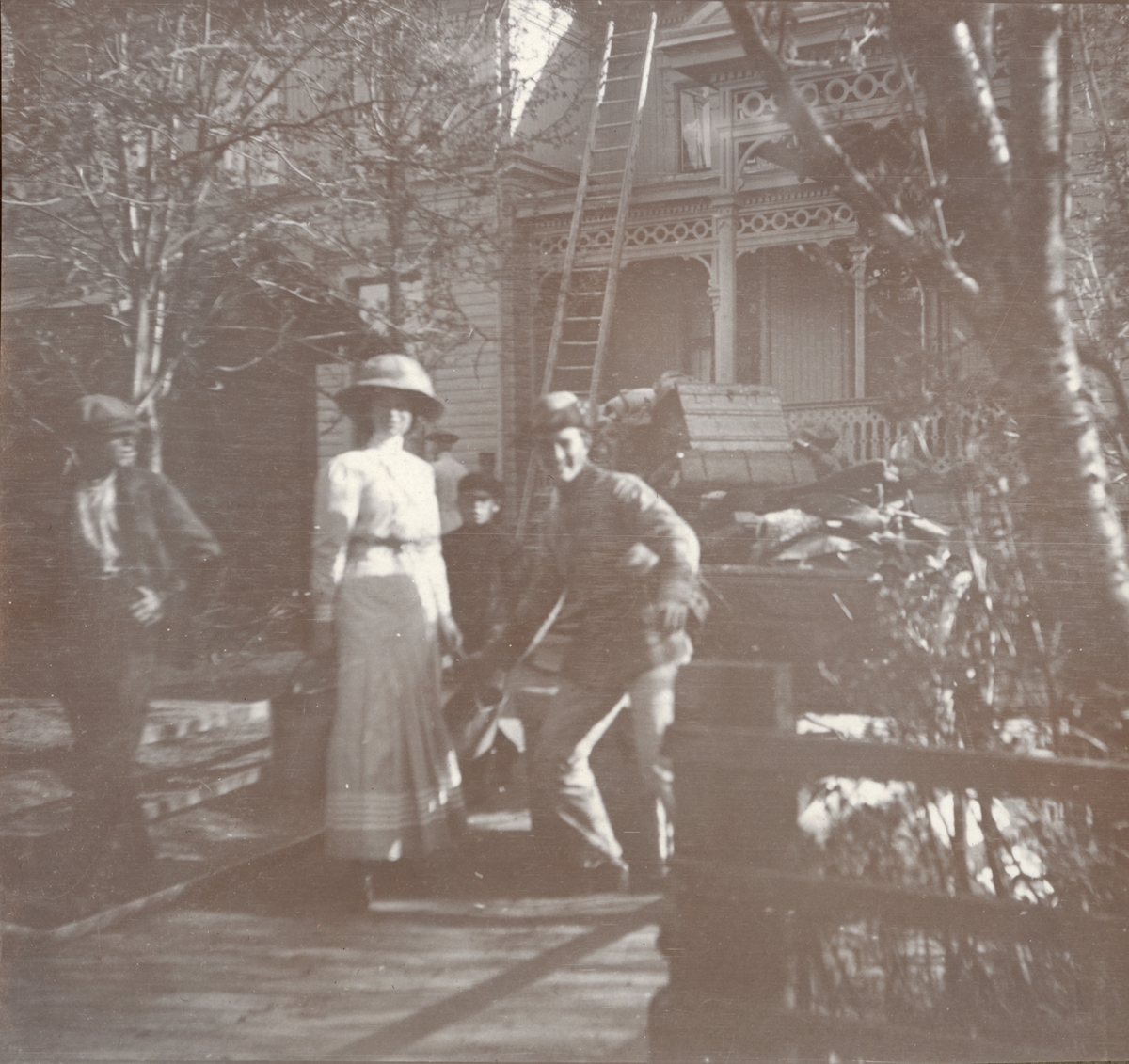 Titel: Text i fotoalbum: "Den stora branden i Umeå. Fröken Forsgren och Ståhle räddar hvad som räddas kan".