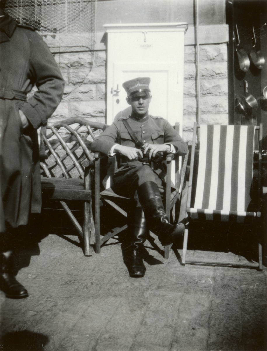 Titel: Text i fotoalbum: "En paus utanför skofabriken på Hornsgat.".