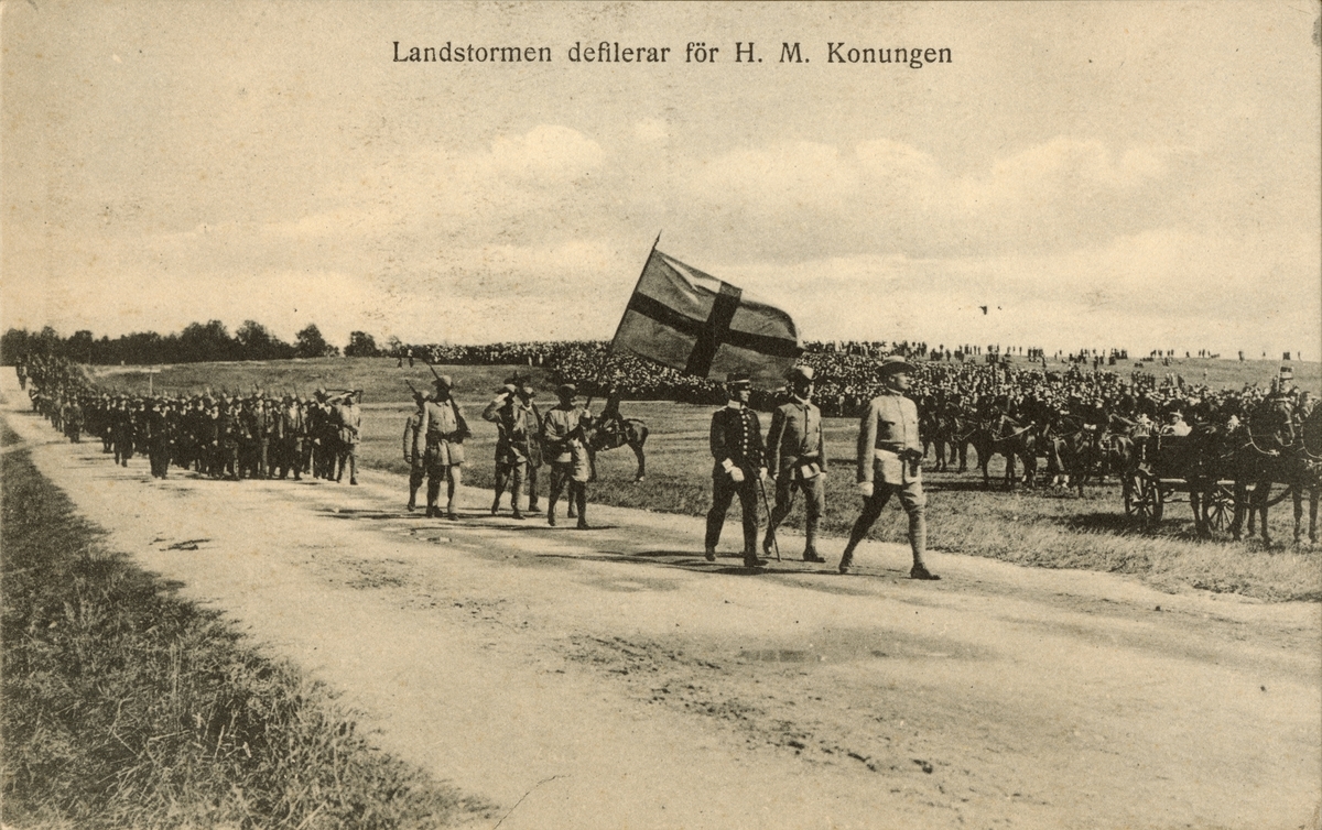 Landstormens mobilisering 1914, landstormsmännen defilerar för Gustav V.
