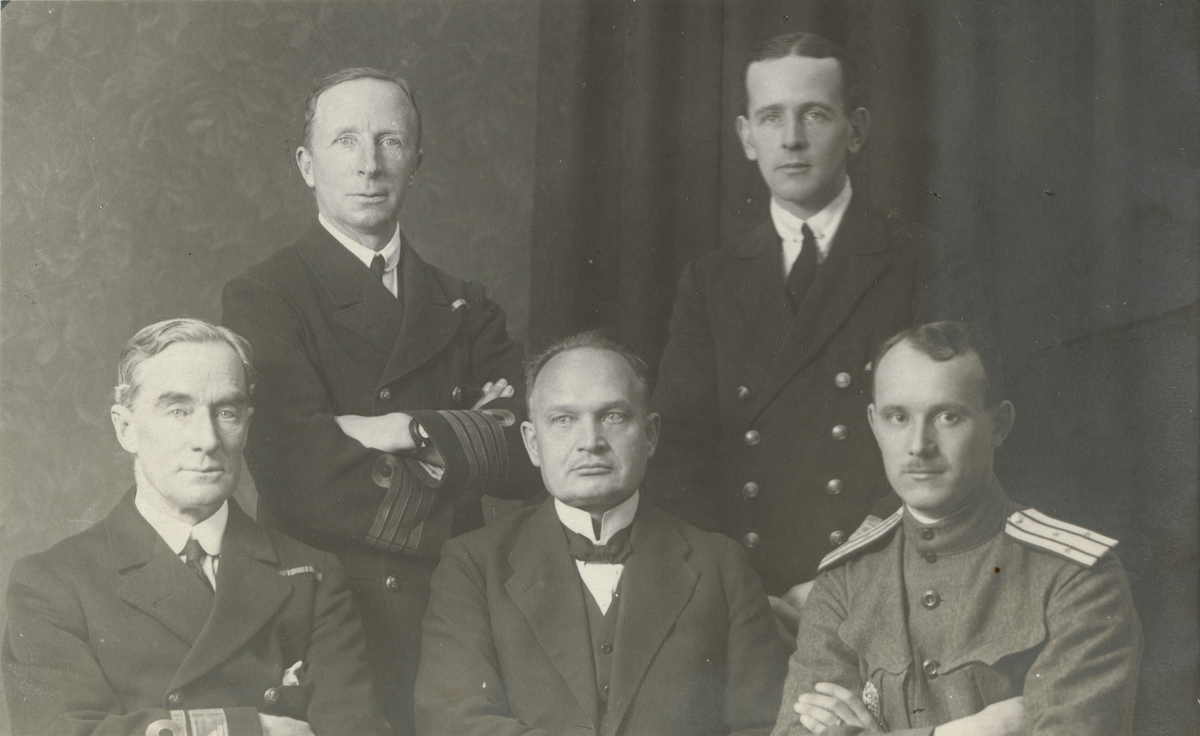 Grupporträtt med president Päts, överbefälhavare general Laidoner samt engelska officerare.