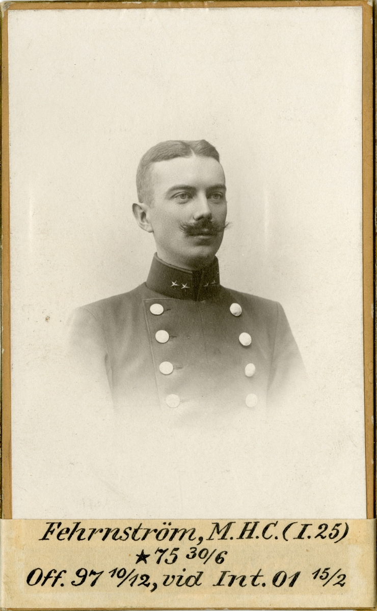 Porträtt av Malte Hugo Christian Fehrnström, underlöjtnant vid Södra skånska infanteriregementet I 25 och Intendenturkåren.