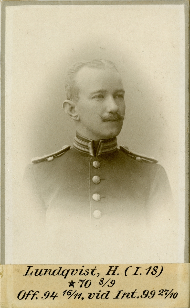 Porträtt av Harald Lundqvist, officer vid Västmanlands regemente I 18 och Intendenturkåren.