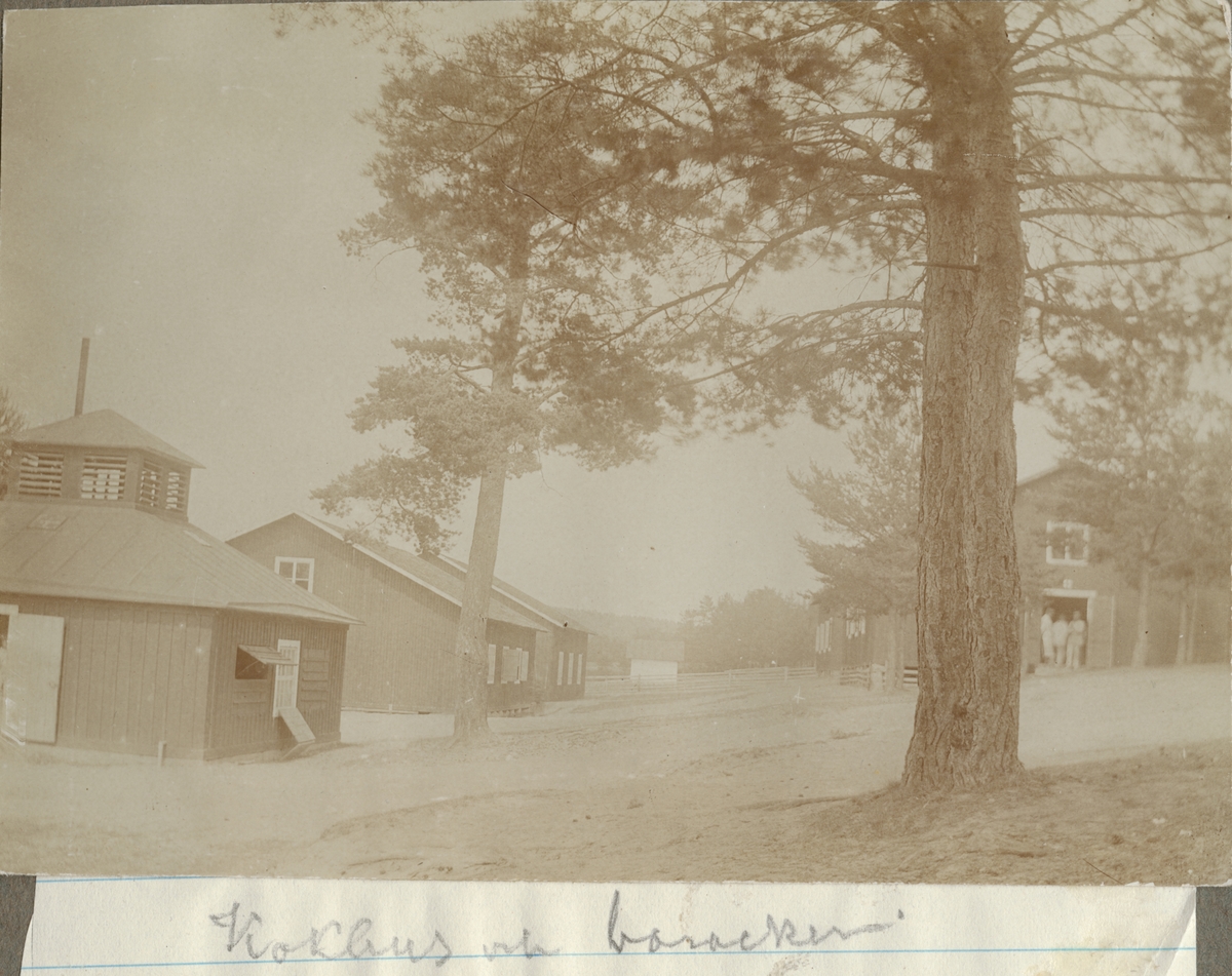 Titel: Kokhus och baracker på Hälsinge regementes övningshed Mohed. Dubblett till AMA.0011112.
