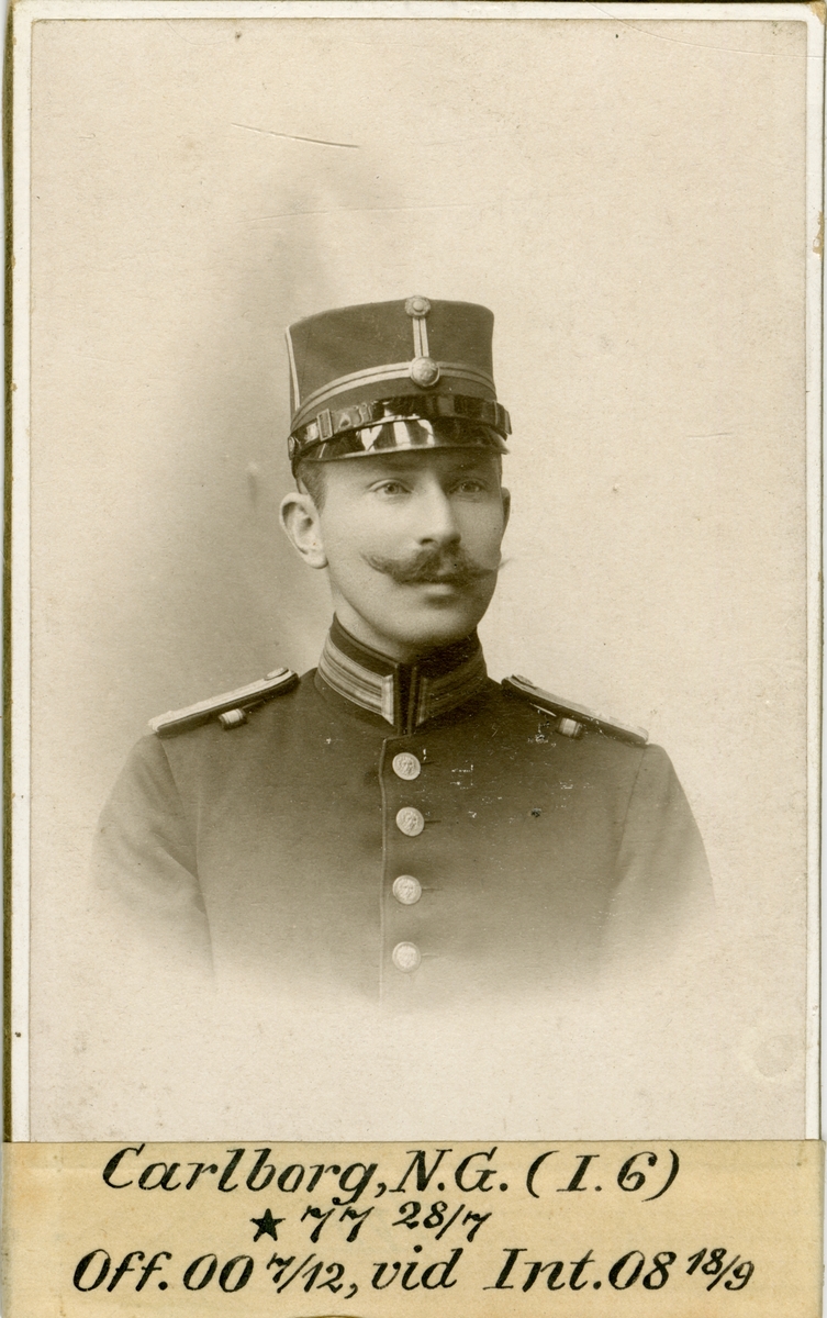 Porträtt av Nils Gustaf Carlborg, officer vid Smålands artilleriregemente I 6 och Intendenturkåren.