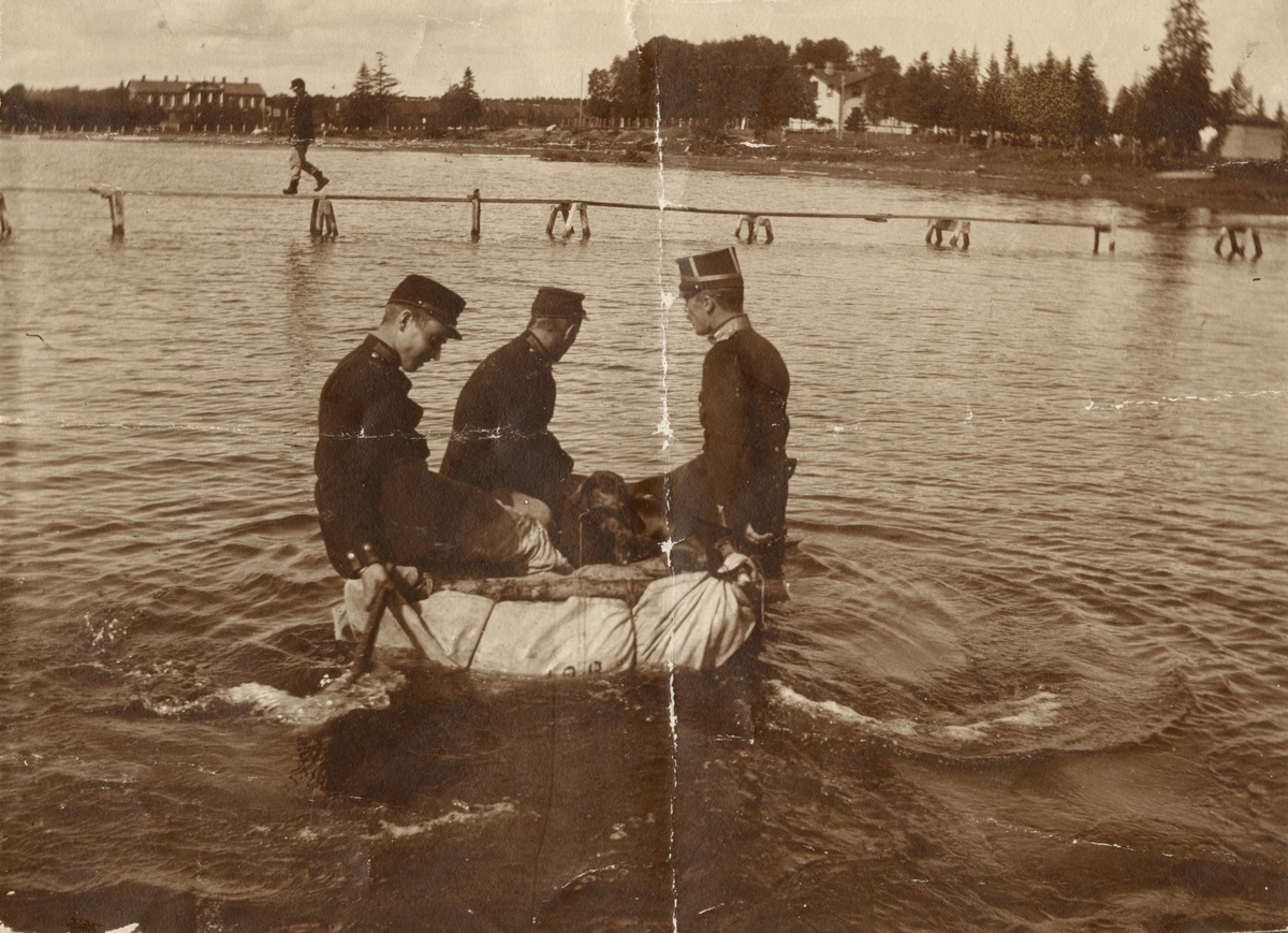 Titel: Text i fotoalbum: "Överskeppningsförskök vid Notviken (Juncker Moritz som passagerare)."
