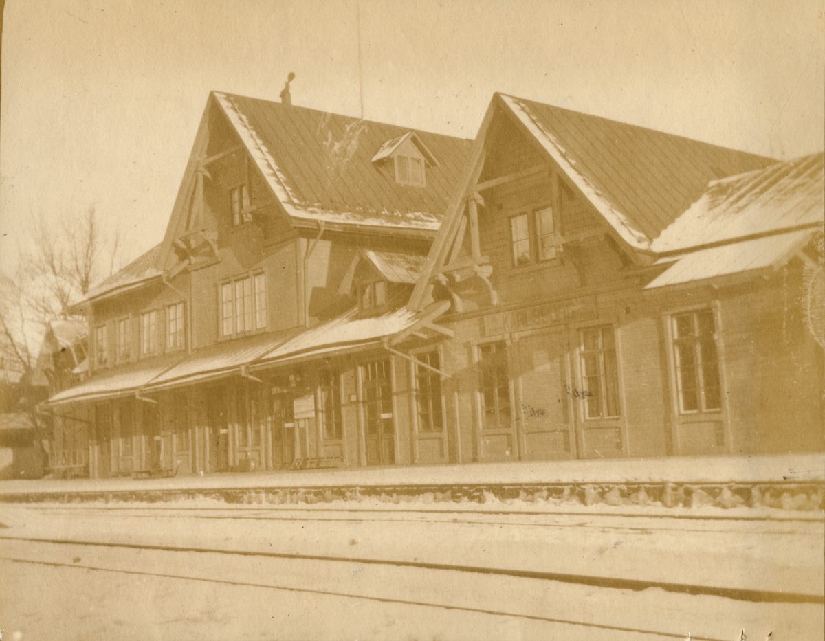 Titel: Text i fotoalbum: "Karlsborgs järnvägsstation."
