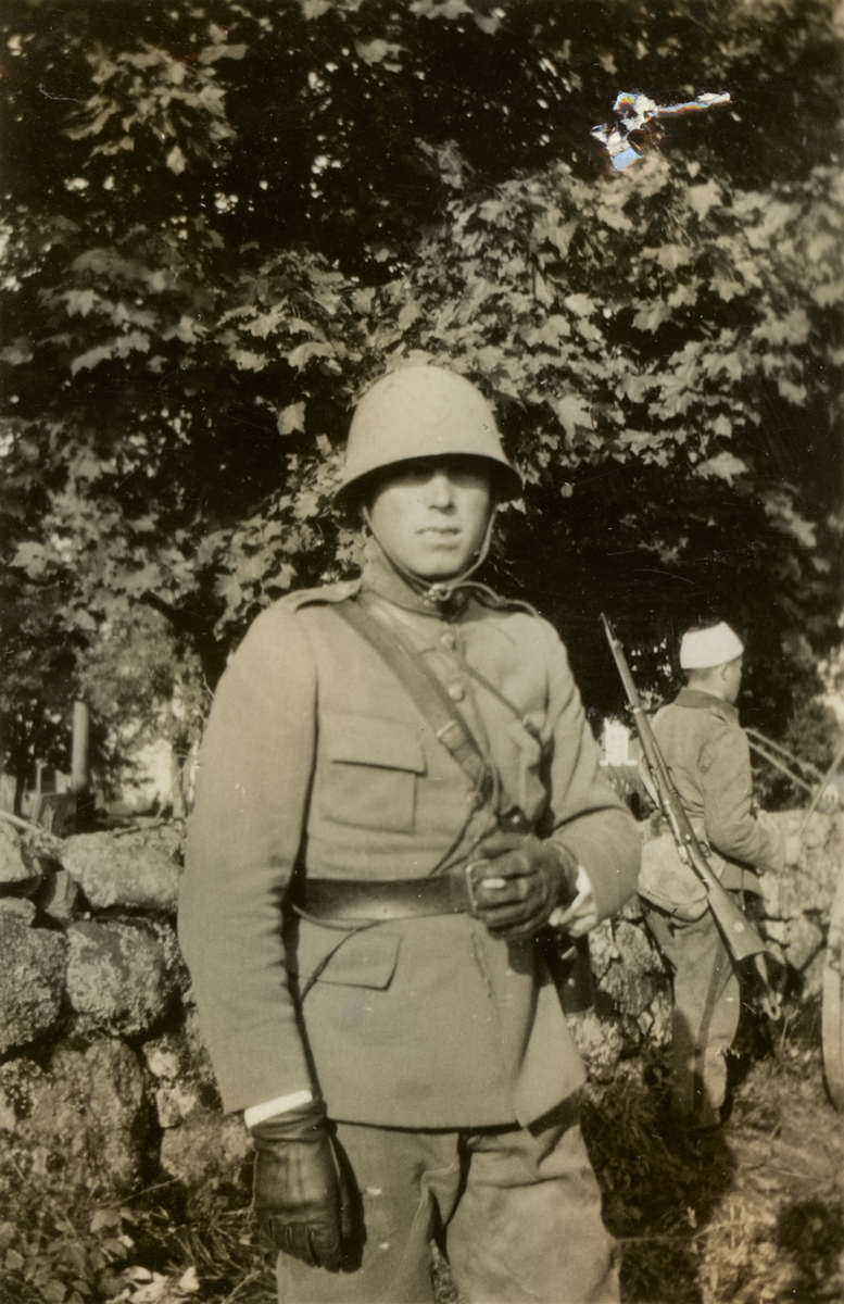 Titel: Text i fotoalbum: "Manöver. Ringström poserar".