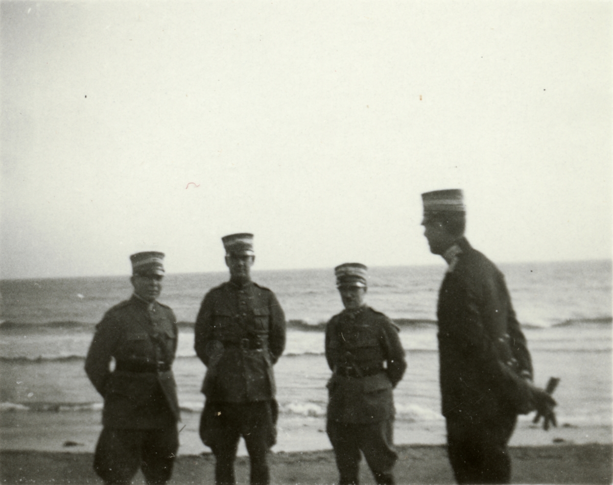 Text i fotoalbum: "1935. Okt. Skånemanövern. Intstridsdomargrp. Björkman. Jönnick, Arntz, v. Heland".