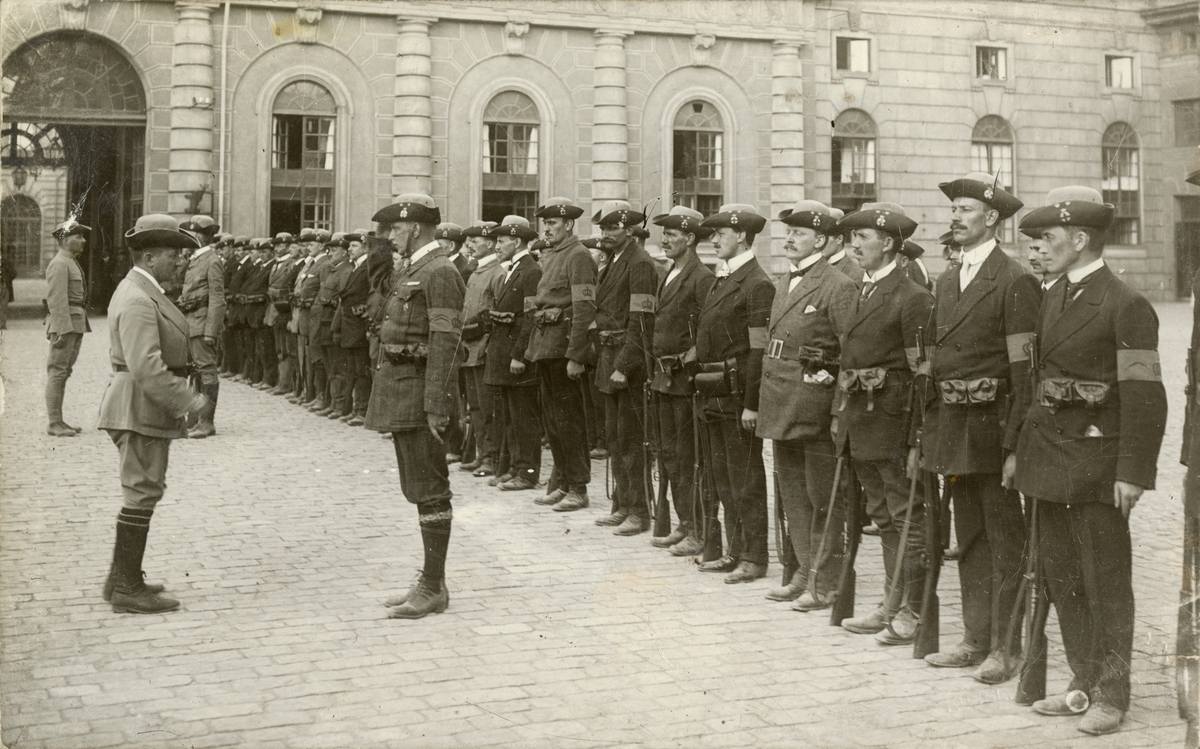 Titel: Text i fotoalbum: Aflämning å yttre Borggården 2. komp:s slutna del.
