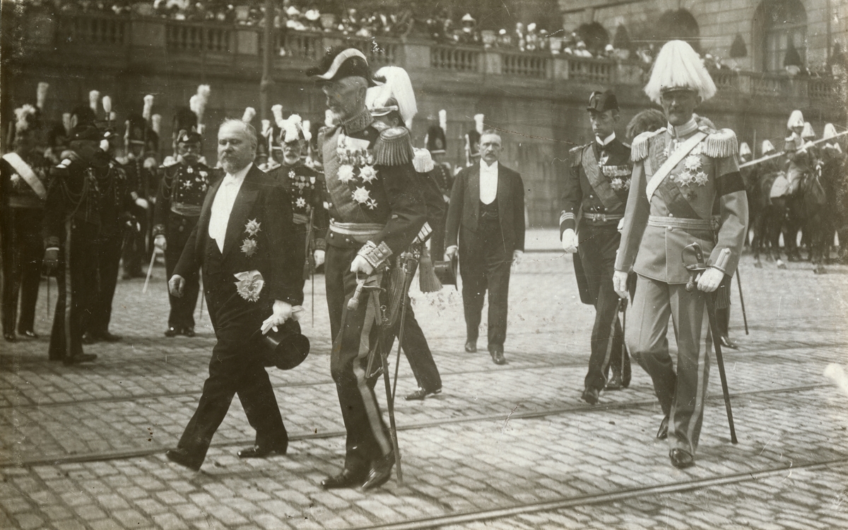 Titel: Text i fotoalbum: H Maj:t Konungen mottager Franska Republikens President Mr. Poincaré den 25. juli 1914.