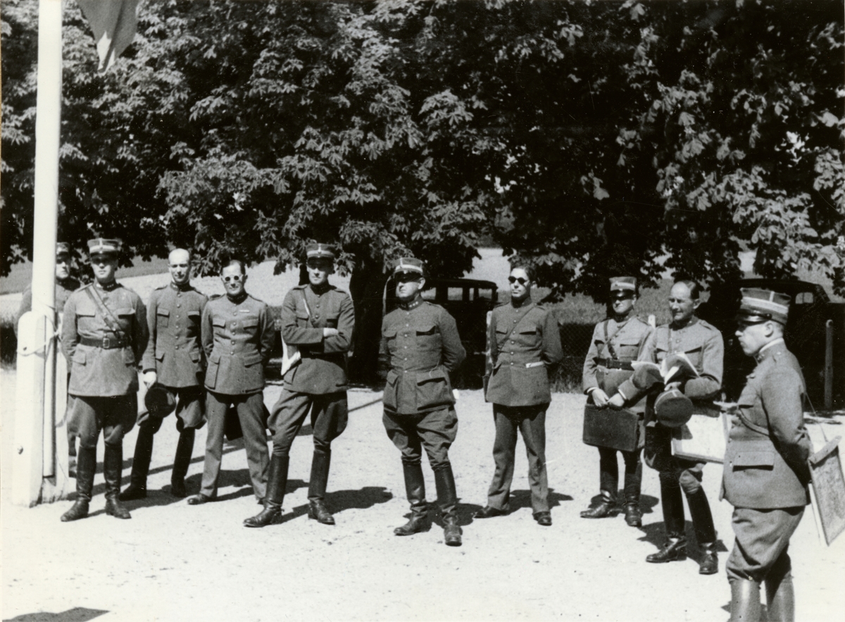 Titel: Text i fotoalbum: "1936 juni. Intendentur-fältövningen i Röstånga. Genomgång av övningen. Kritik".