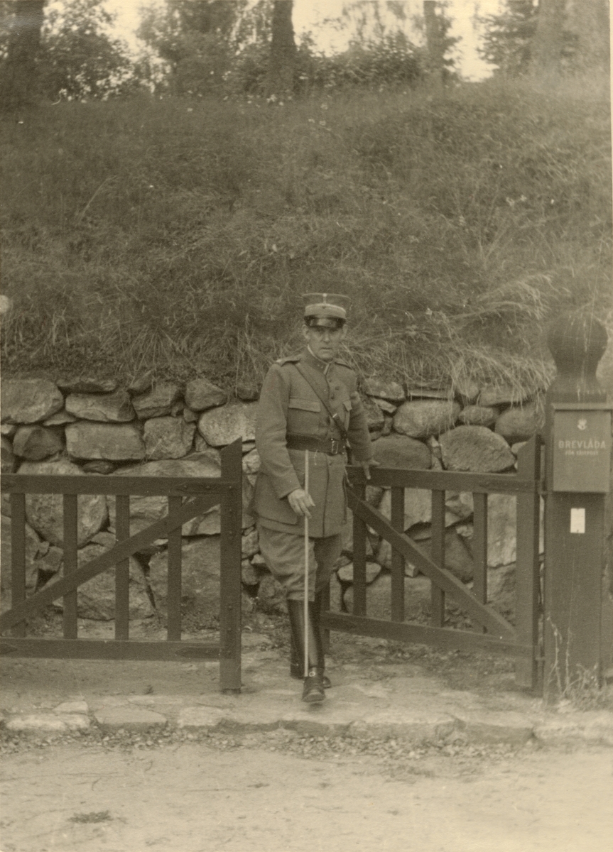 Titel: Text i fotoalbum: "Beredskapstjänst april-okt 1940 vid Fältpost". Gruppbild.