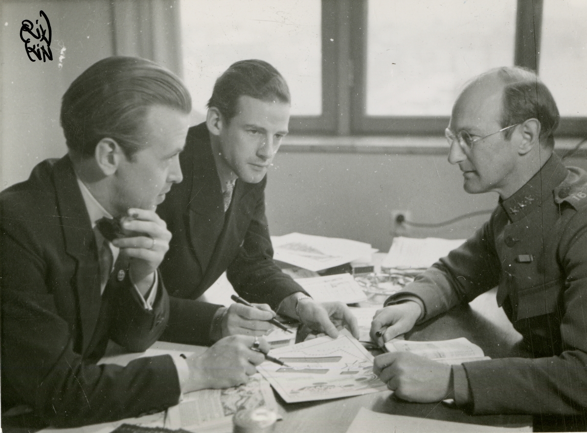 Grupporträtt av kand. Stahre, Tedin och okänd officer 1940.