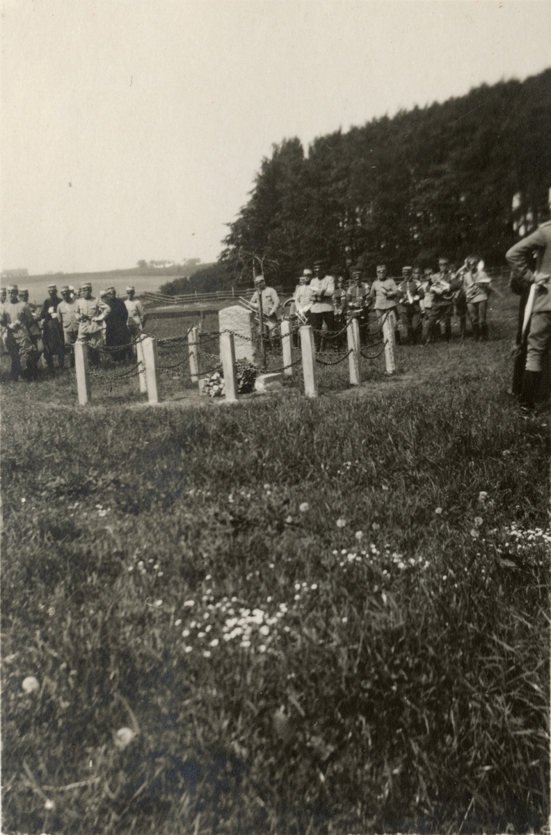 Titel: Text i fotoalbum: "Förbindelsekursen 1920". Samling vid minnessten.