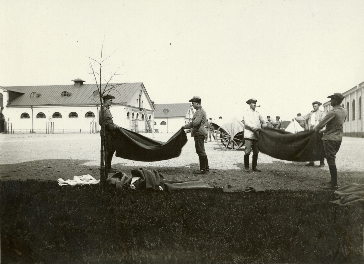 Titel: Sodlater på kaserngård.