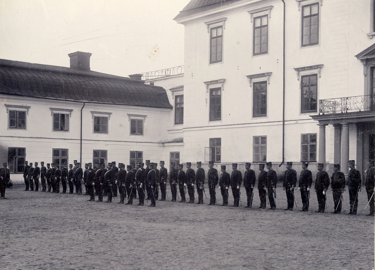 Infanteriets skjutskola uppställd på gården framför Rosersbergs slottet, 1900.