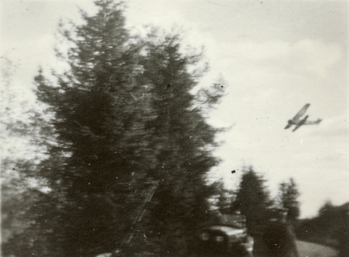 Titel: Text i fotoalbum: "1936. Okt. Gävlemanövern. Flyganfall på trängkol.".
