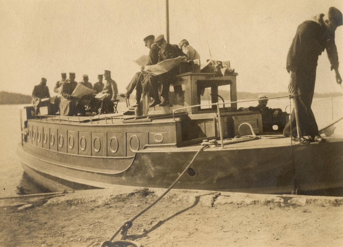 Titel: Text i fotoalbum: "Nynässkandalen 1920. I väntan på bensin-nyckeln i Vaxholm!"