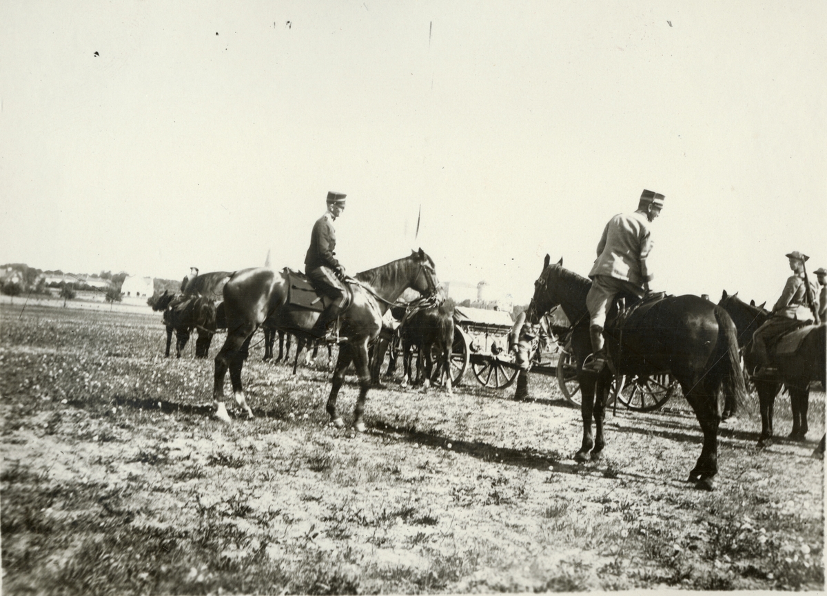 Soldater till hästpå övningsplats.