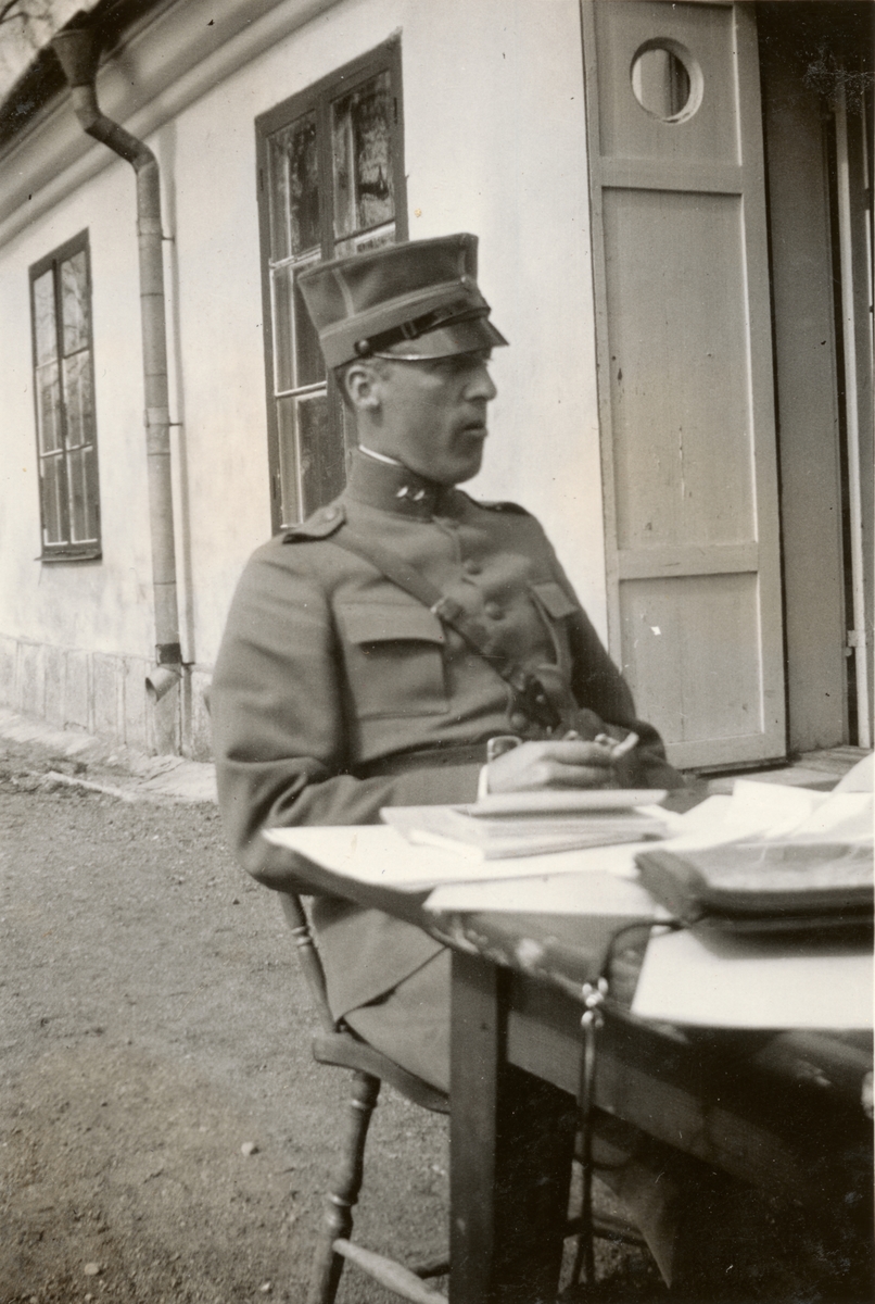 Text i fotoalbum: "Veek-end i Säby, våren 1934. Efter väl förrättat värv".