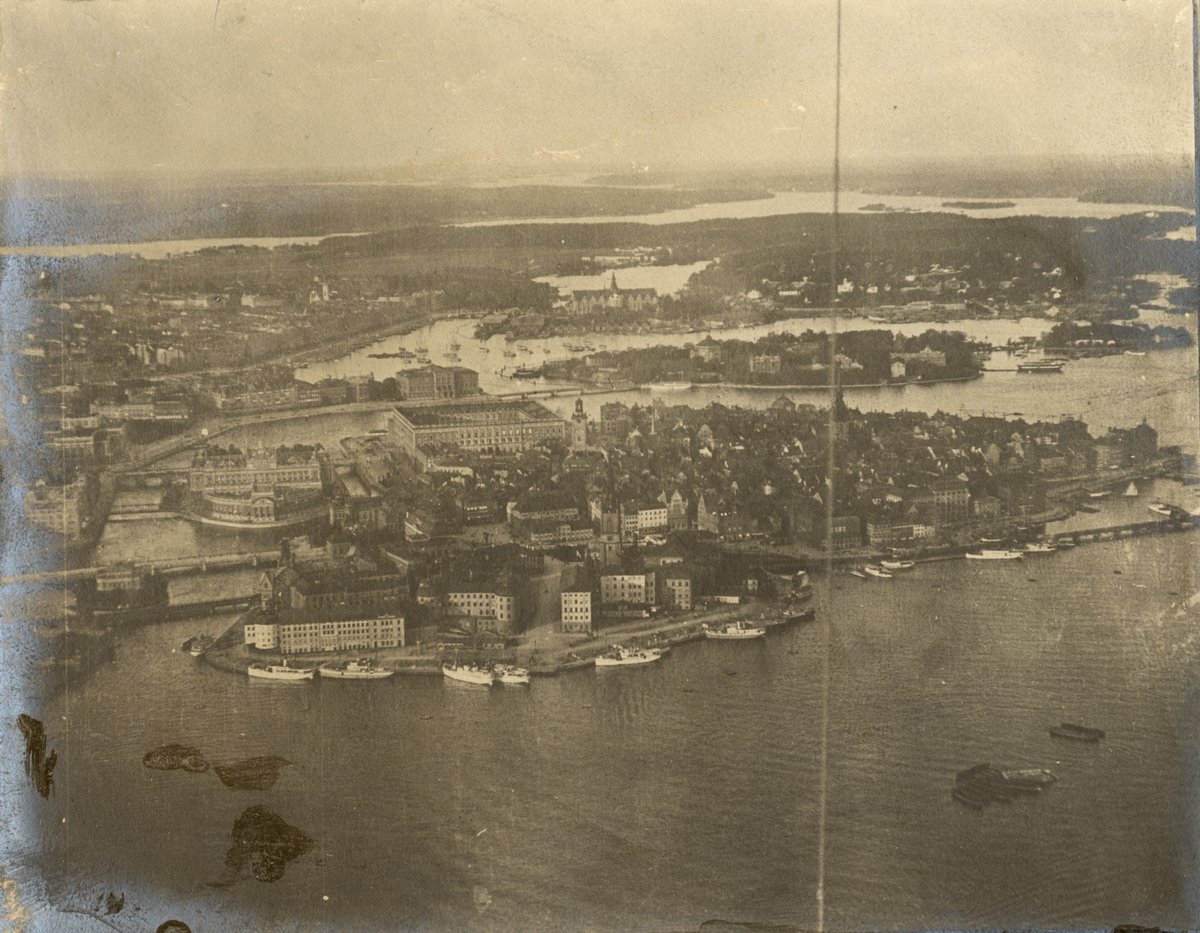 Titel: Flygfoto över Stockholm taget från luftballong.