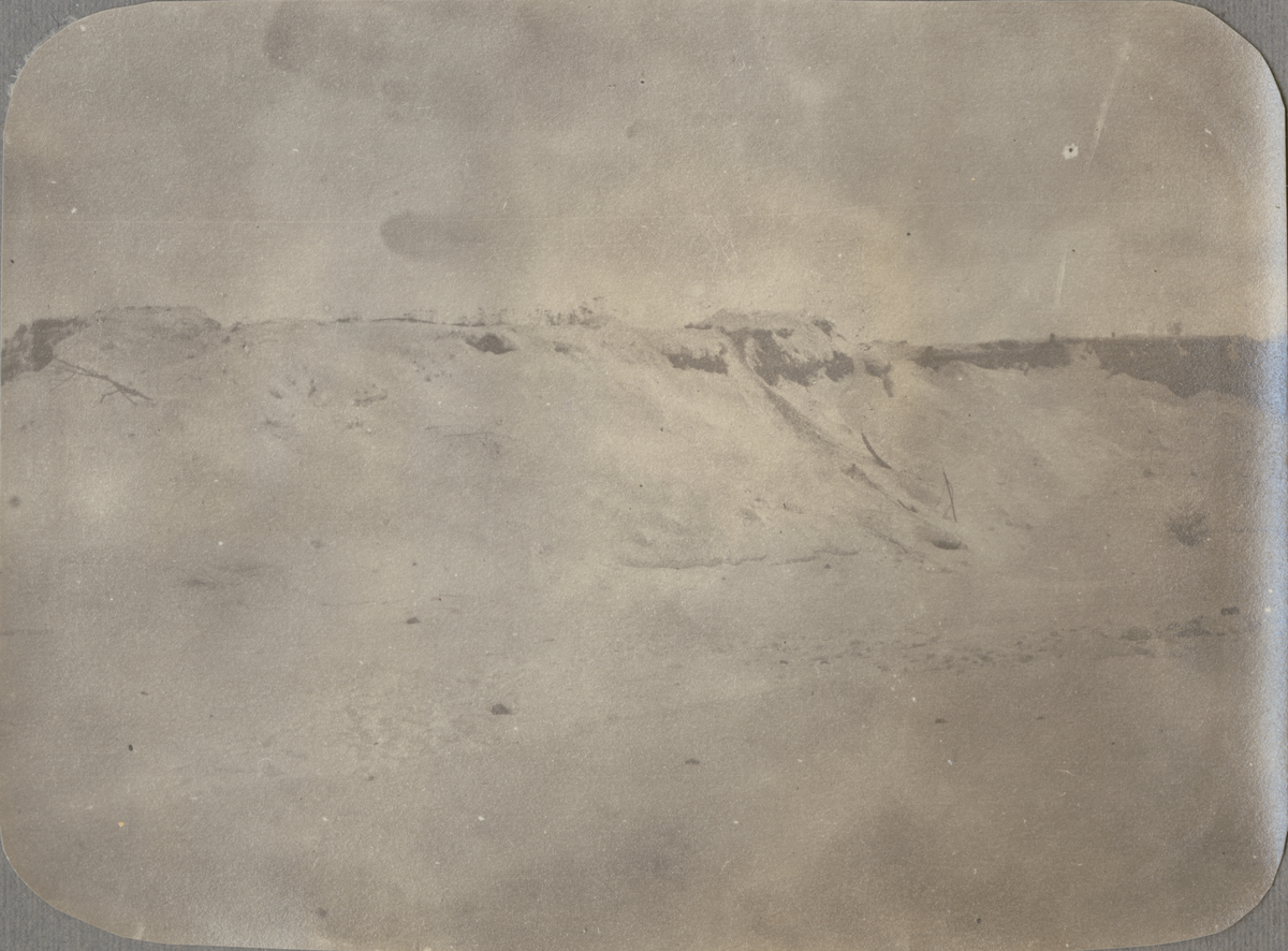 Text i fotoalbum: "Januari 1917 vid Olai. (Winterschlacht am der Aa med ryska tumeld och gasanfall). Se tidningsnotisen "Ett ryskt gasanfall på Rigafronten". Vår ställning tagen fram ifrån".