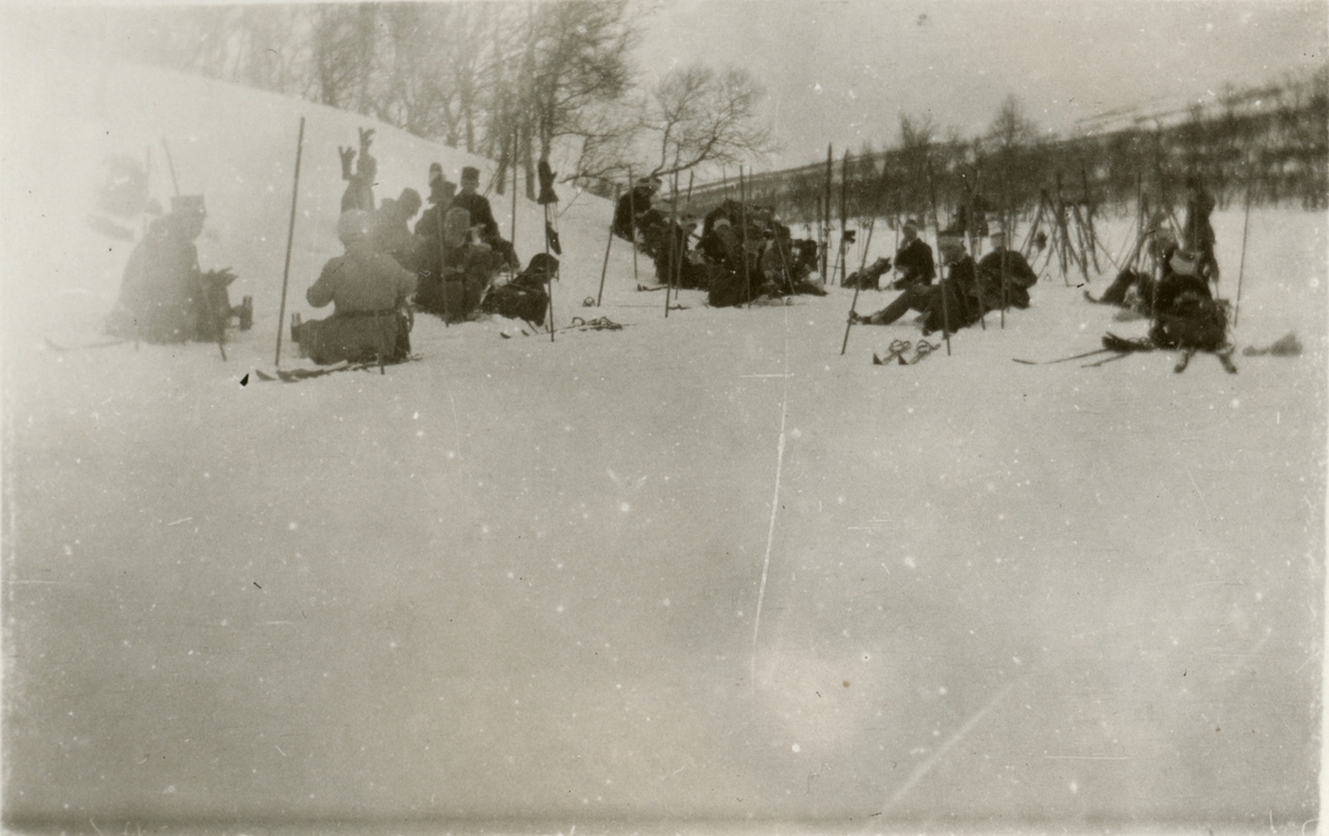 Titel: Text i fotoalbum: "Storlien febr. 1927. Marsch till Blåhammarn. Rast i Enaälvens dalgång".