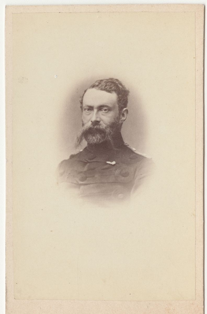 Porträtt av Axel Henrik Drastrup, premiärlöjtnant och kompanikommendör vid 3. infanteriregementet, 7. kompaniet, danska armén. Sårad i slag den 18 april 1864 och död under slaget på Als den 29 juni 1864.