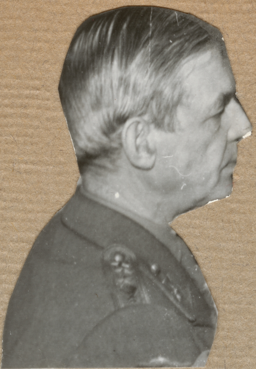 Titel: Text i fotoalbum: "KAFI UndB. (=Kungl. Arméförvaltningens Underrättelsebyrå). Ch Överste Jarl".