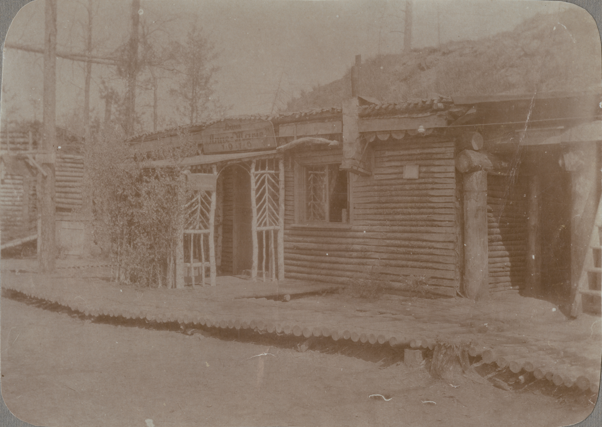 Text i fotoalbum: "Juli 1917. Min Unterstand i Zornwaldställningen. Haus Anne-Marie utifrån (bakom vårt bombsäkra skyddsrum)."