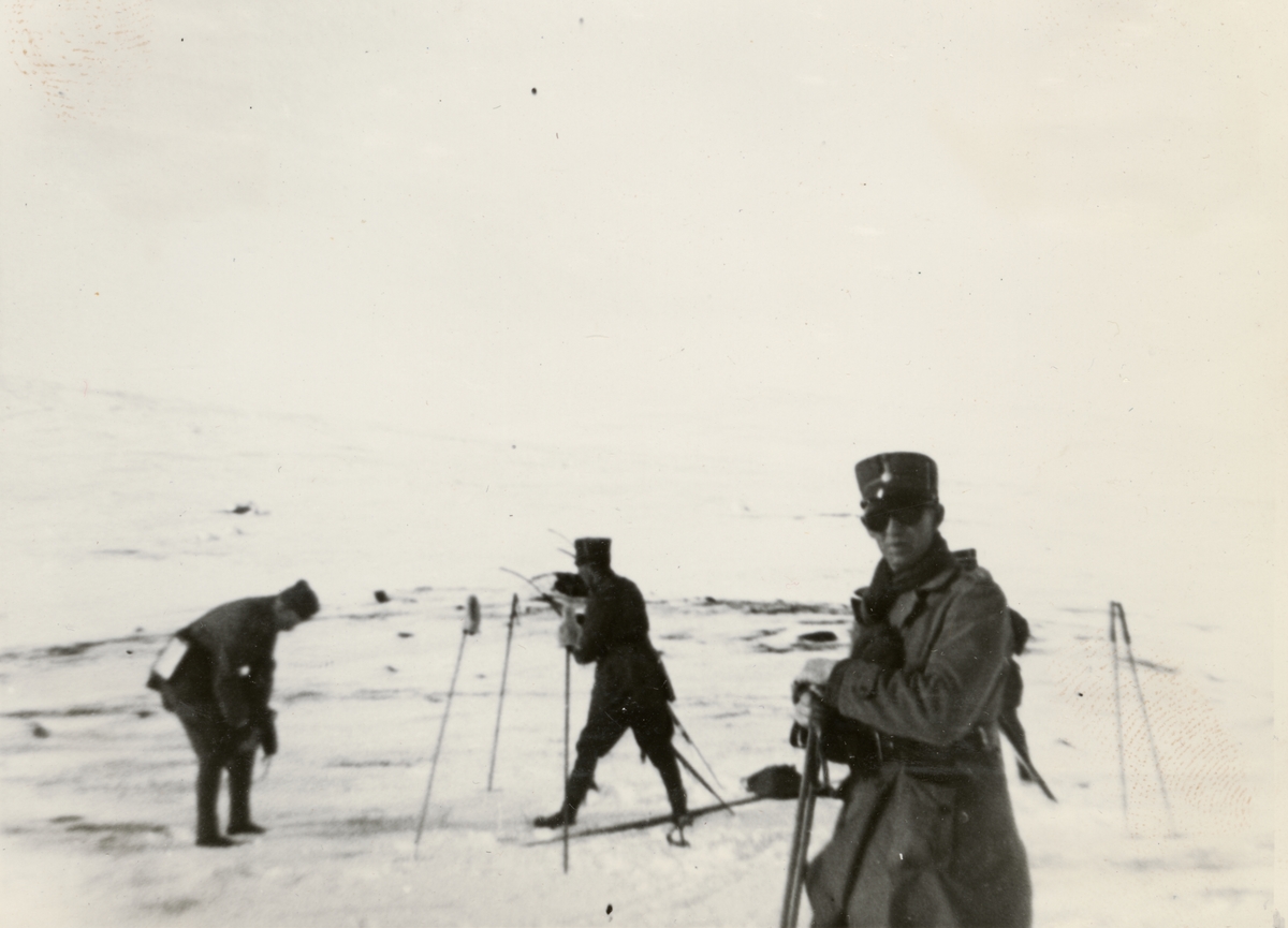 Titel: Text i fotoalbum: "Vinterbefälsövningar i Idre febr 1938. På Gränjes våla".