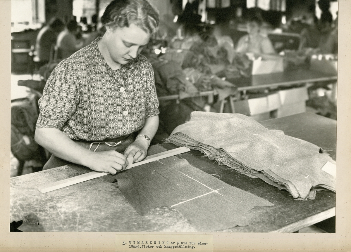Utmärkning av plats för slaglängd, fickor och knappställning.