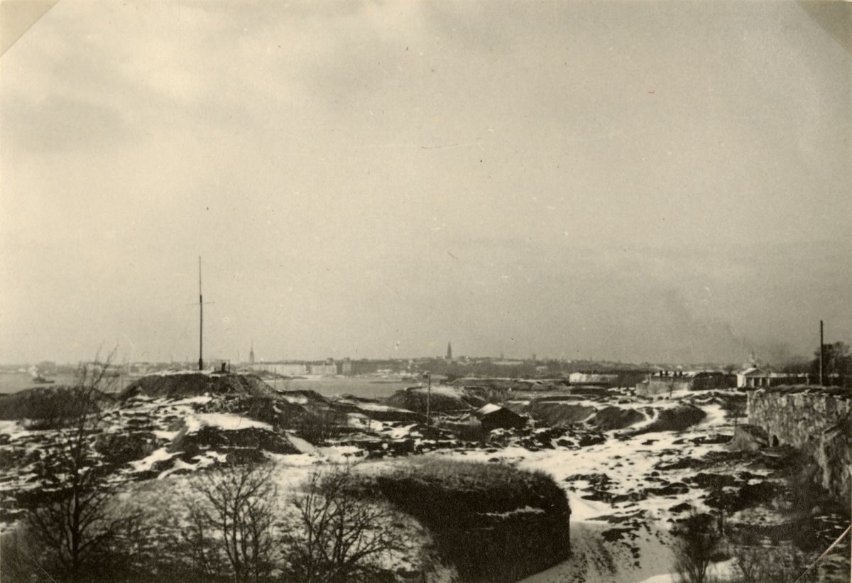 Text i fotoalbum: "Studieresa med general Alm till Finland 1.-12. mars 1939. Utsikt mot Helsingfors från Sveaborg."