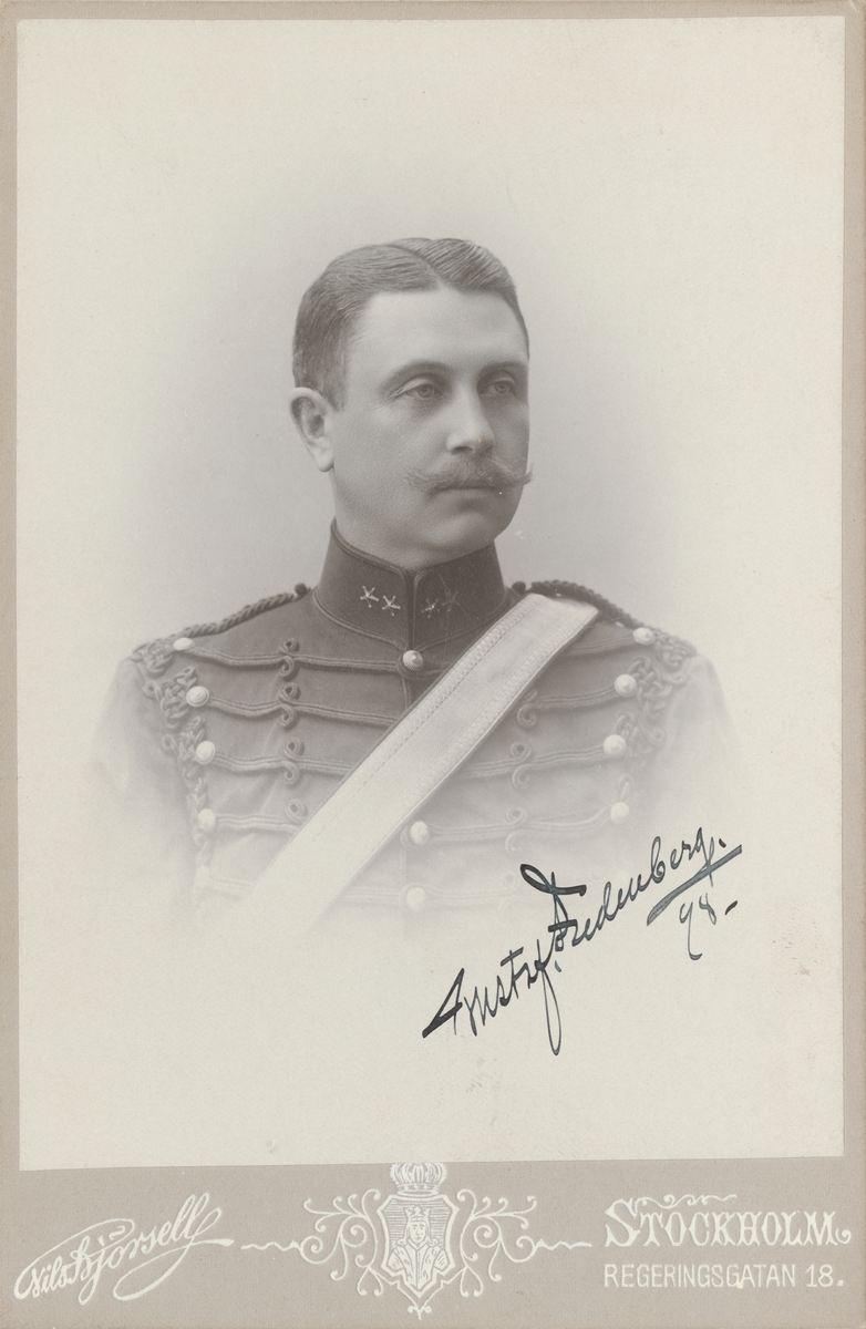 Porträtt av Gustaf Fredrik Valdemar Fredenberg, löjtnant vid Andra Svea artilleriregemente.