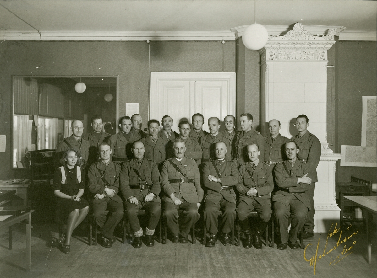 Grupporträtt av officerare (chef med stab) för Luleå försvarsområde.