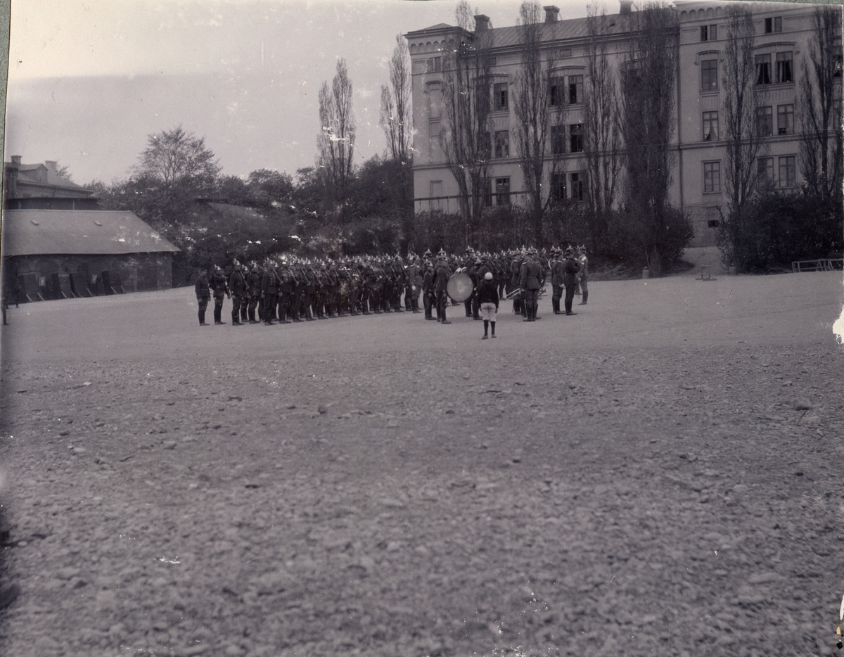 Titel: Soldater uppställda för marsch.