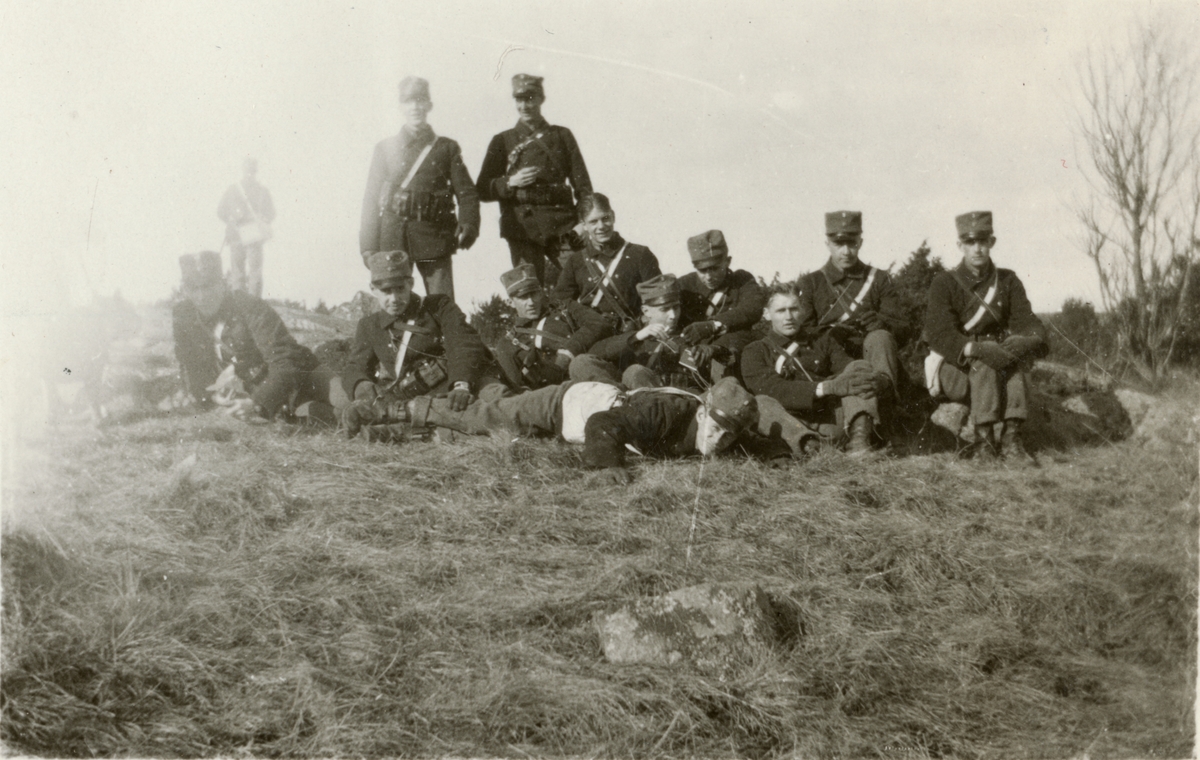 Titel: Text i fotoalbum: "Krigsskolan 10 okt 1926 - 31 dec 1927. Från övningarna. På Järvafältet".