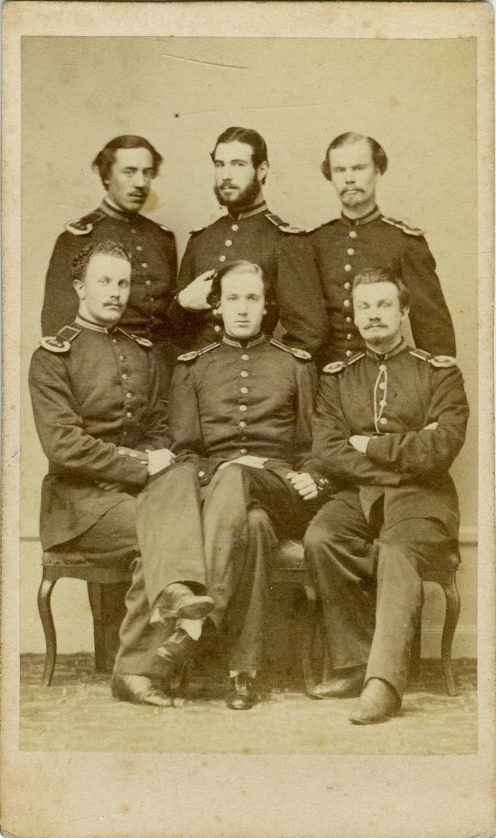 Porträtt av officerare, övre raden från vänster: Bror Johan August Lidman, Carl Magnus Axel Wästfelt och Carl Gustaf Alexander Sederholm.