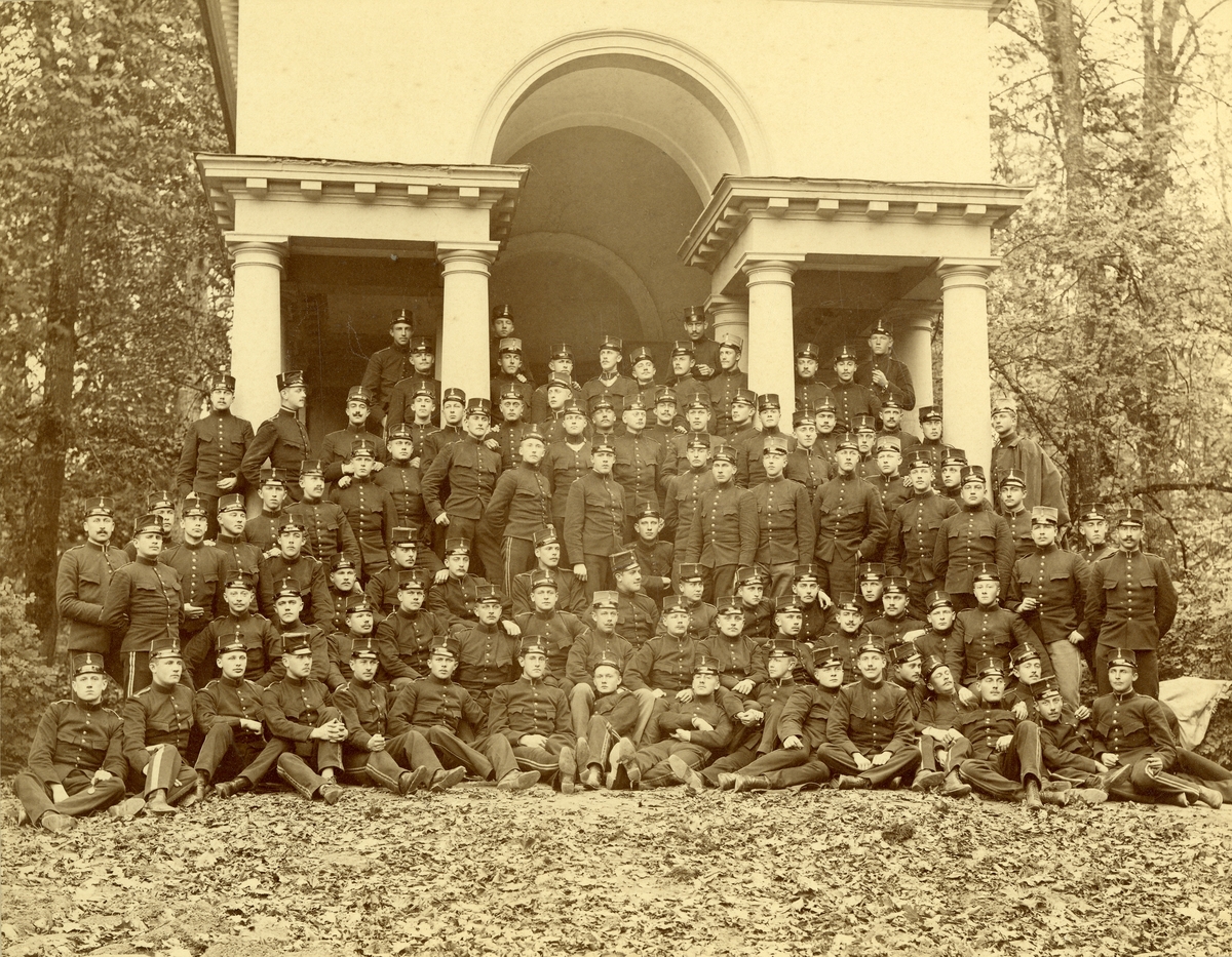 Titel: Grupporträtt av utexaminerade elever från krigsskolan 1896.